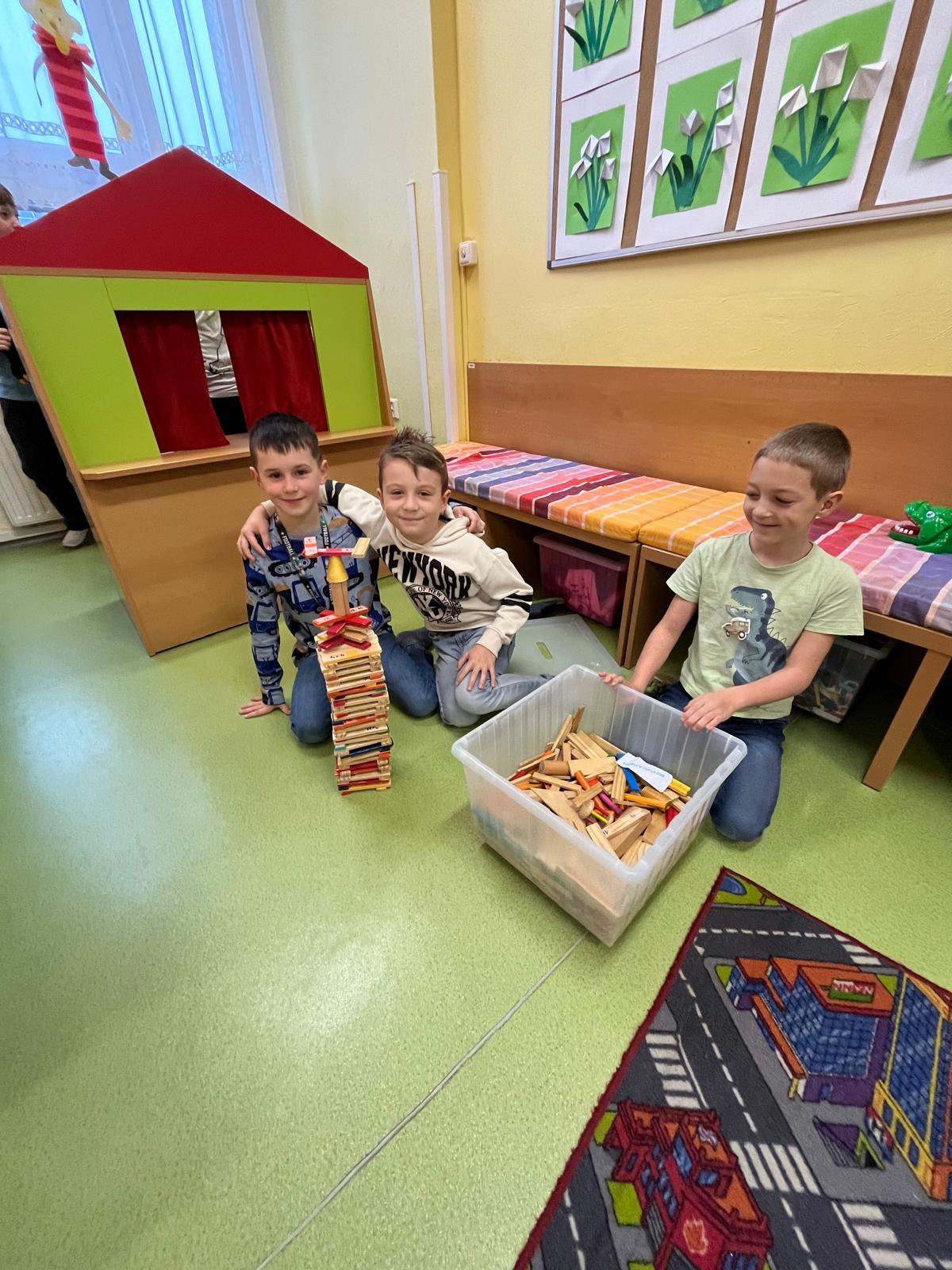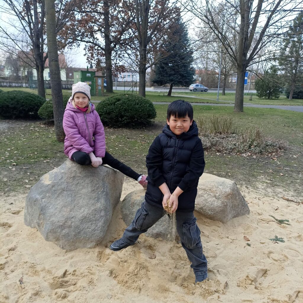 Ani v tomto měsíci nechyběly oblíbené hry, společné čtení a odpočinkové chvilky. Jakmile to počasí dovolilo, vyráželi jsme ven – na procházky do lesa i na dětská hřiště v okolí, kde si děti užily spoustu pohybu, her a zábavy na čerstvém vzduchu.