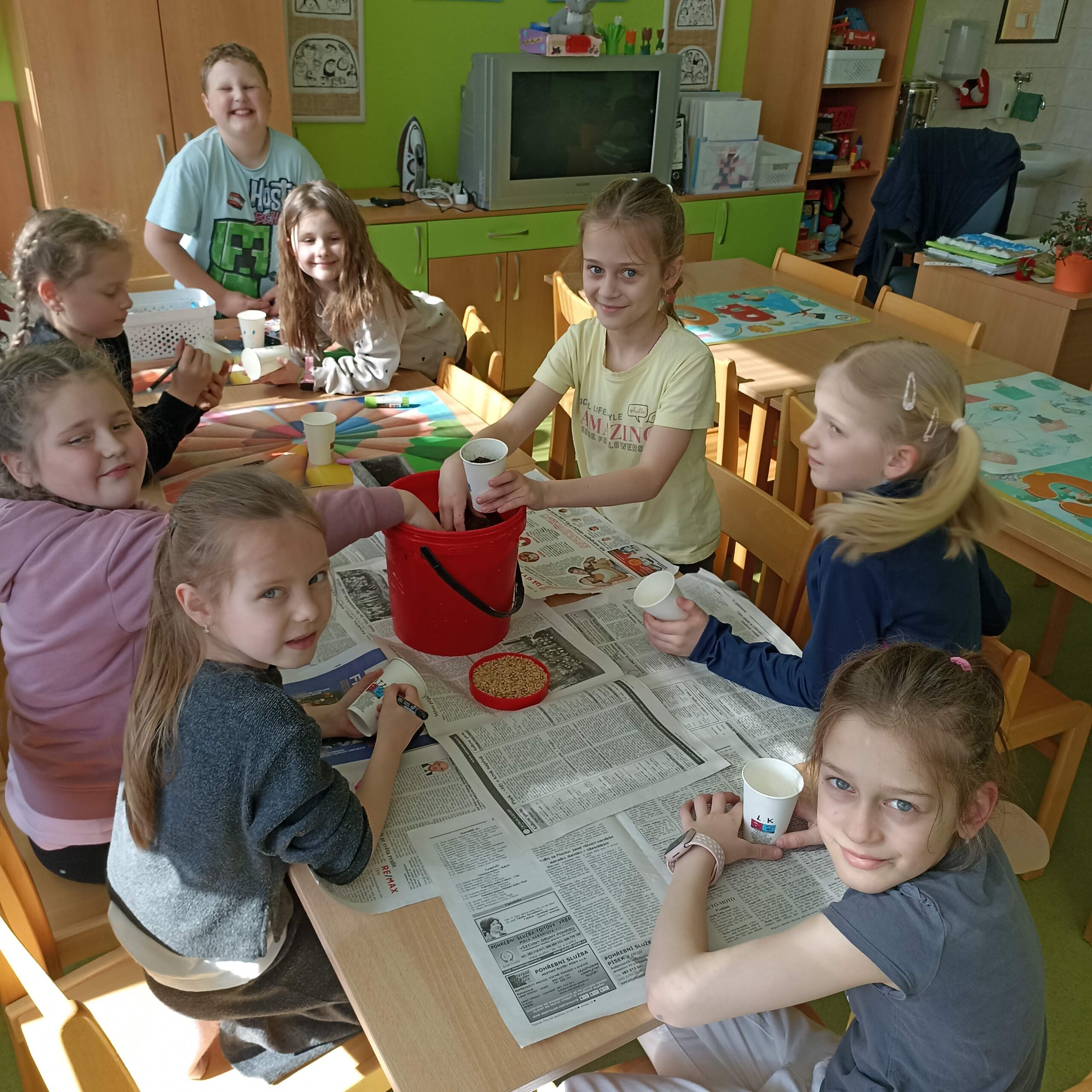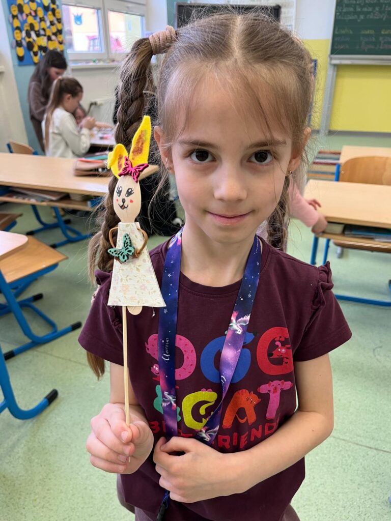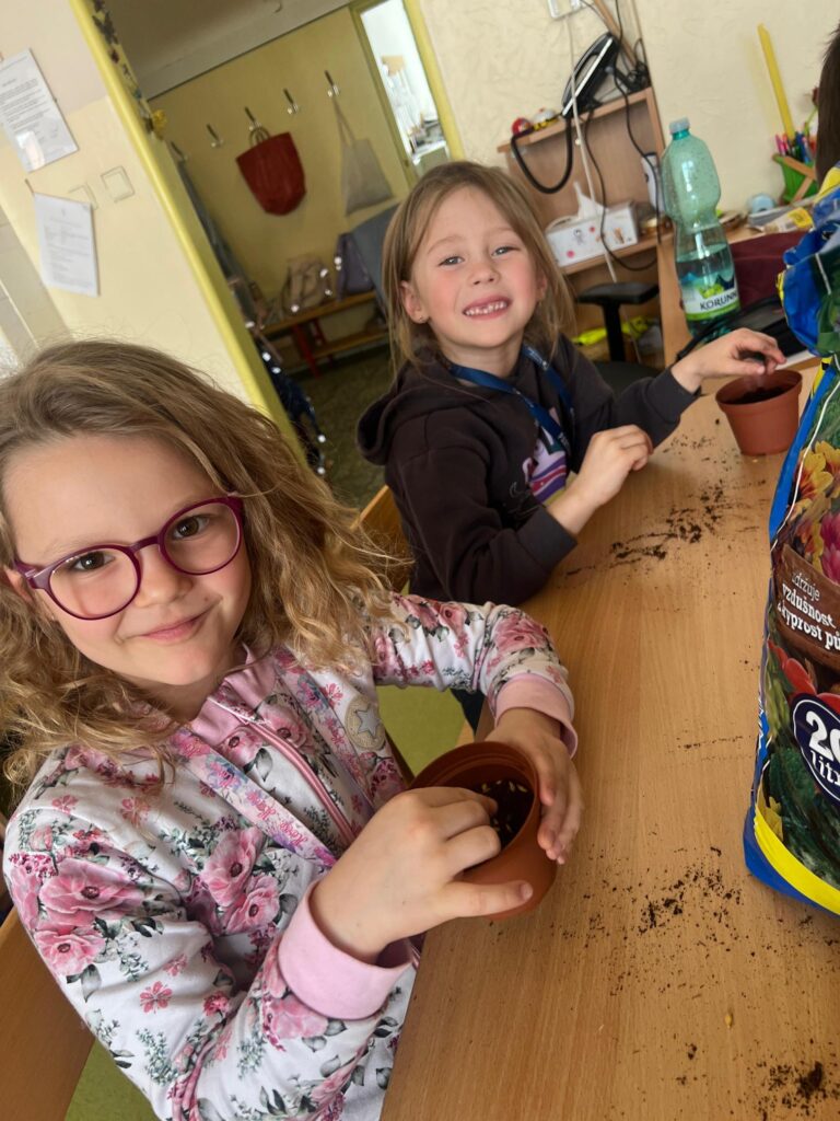 Březen jsme věnovali také přípravám na Velikonoce. Děti si s nadšením zasely osení a řeřichu a pozorovaly, jak jim každý den krásně roste. Při tvořivých činnostech si malovaly vajíčka – skutečná i papírová – a vyráběly další veselé velikonoční dekorace, kterými jsme si vyzdobili družinu.