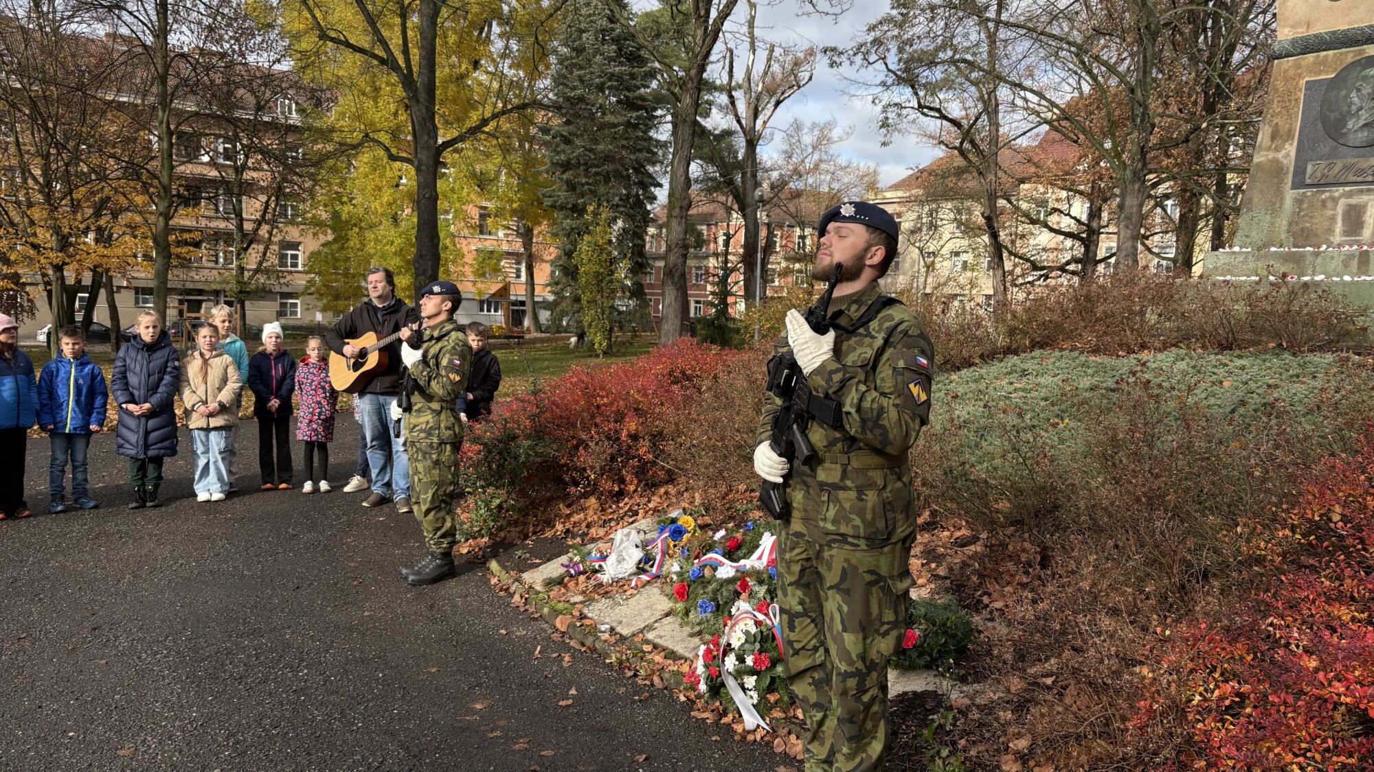Celé akci přihlížely také děti z 15. mateřské školy, pro které se celý pietní akt stal zajímavým zpestřením dopolední procházky.