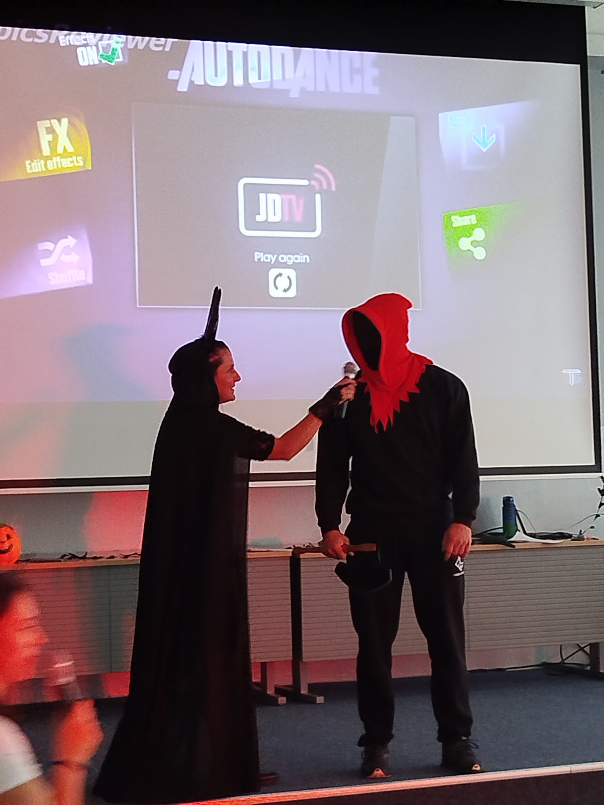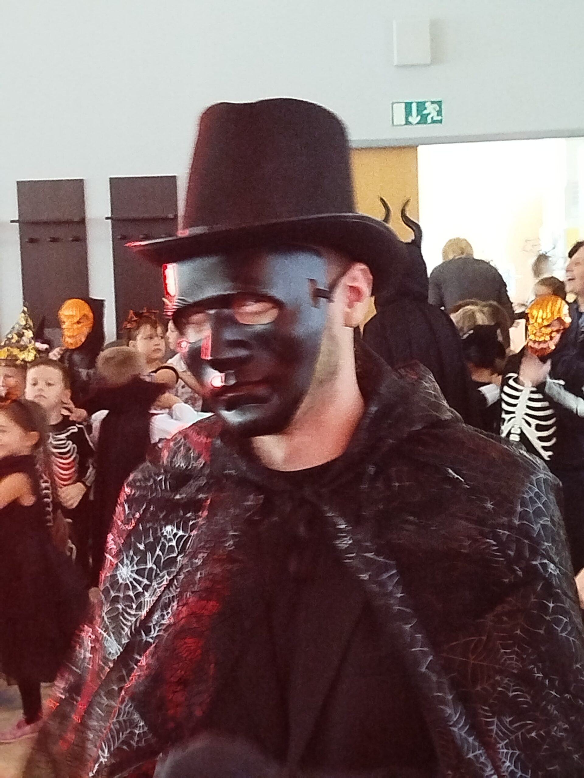 Z auly se stalo místo plné tajemných bytostí – po parketu se pohybovali duchové, čarodějnice i kostlivci a také dvě tajemné postavy, které vzbuzovaly zvědavost všech přítomných. O překvapení se postarala třetí maskovaná postava, která se objevila v závěru této akce. Ta nám předvedla úžasné parkourové kousky, které nás všechny nadchly. Poté se děti snažily přijít na to, kdo se pod maskami těchto tajemných bytostí skrývá.