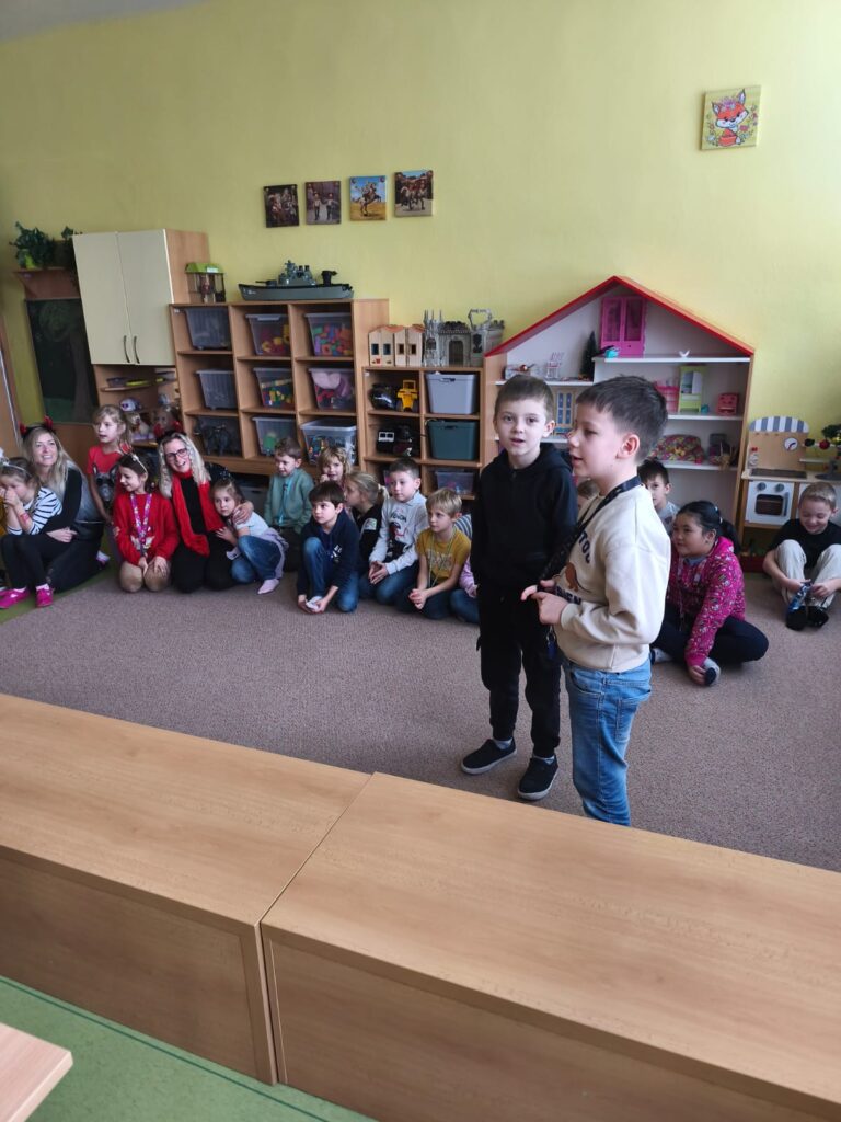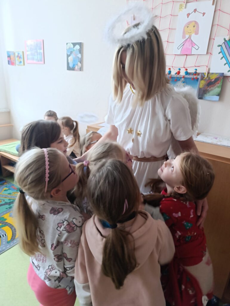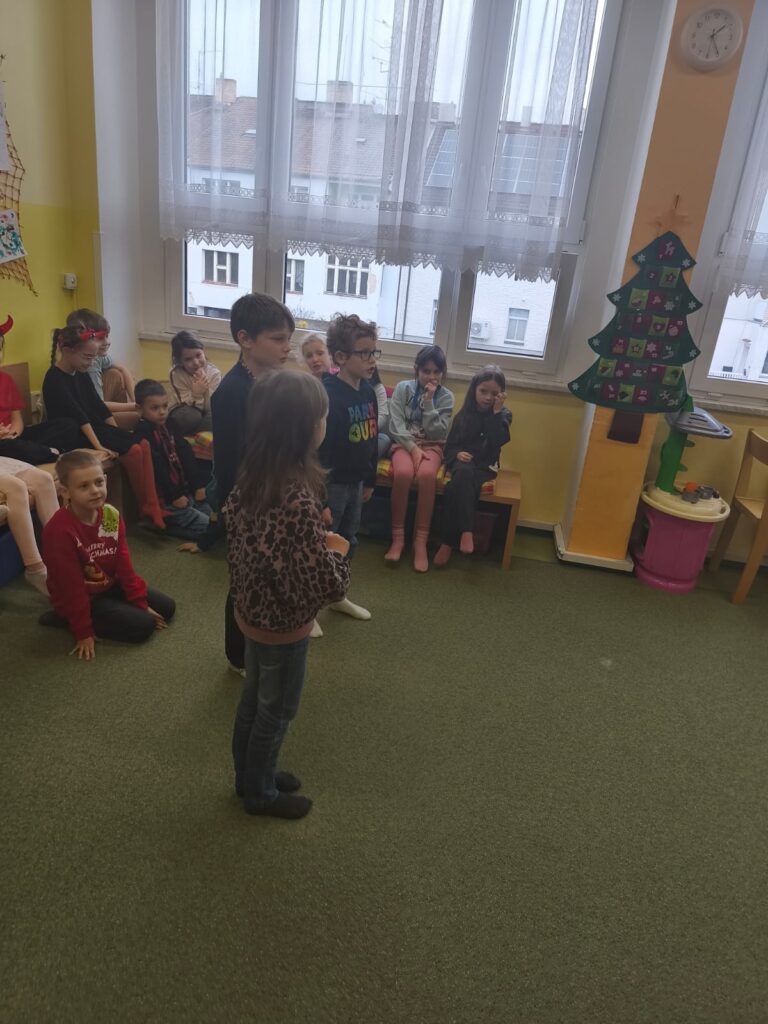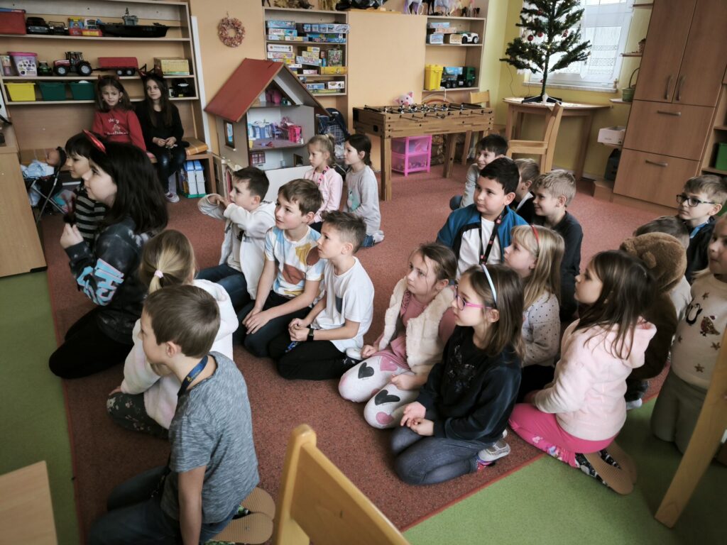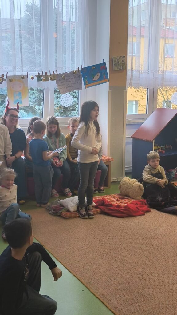 Poctivě se připravovaly: učily se krátké básničky i písničky, které pak Mikulášské skupině s odvahou předvedly. Čert tentokrát nikoho nestrašil – byl spíš legrační a přátelský. S andělem a Mikulášem přinesli dětem i malou nadílku, kterou jsme si společně v družině rozbalili. Celá návštěva měla nádech tajemna – chvíle napětí se střídaly s radostí a očekáváním. Pro děti to byl kouzelný a nezapomenutelný zážitek.