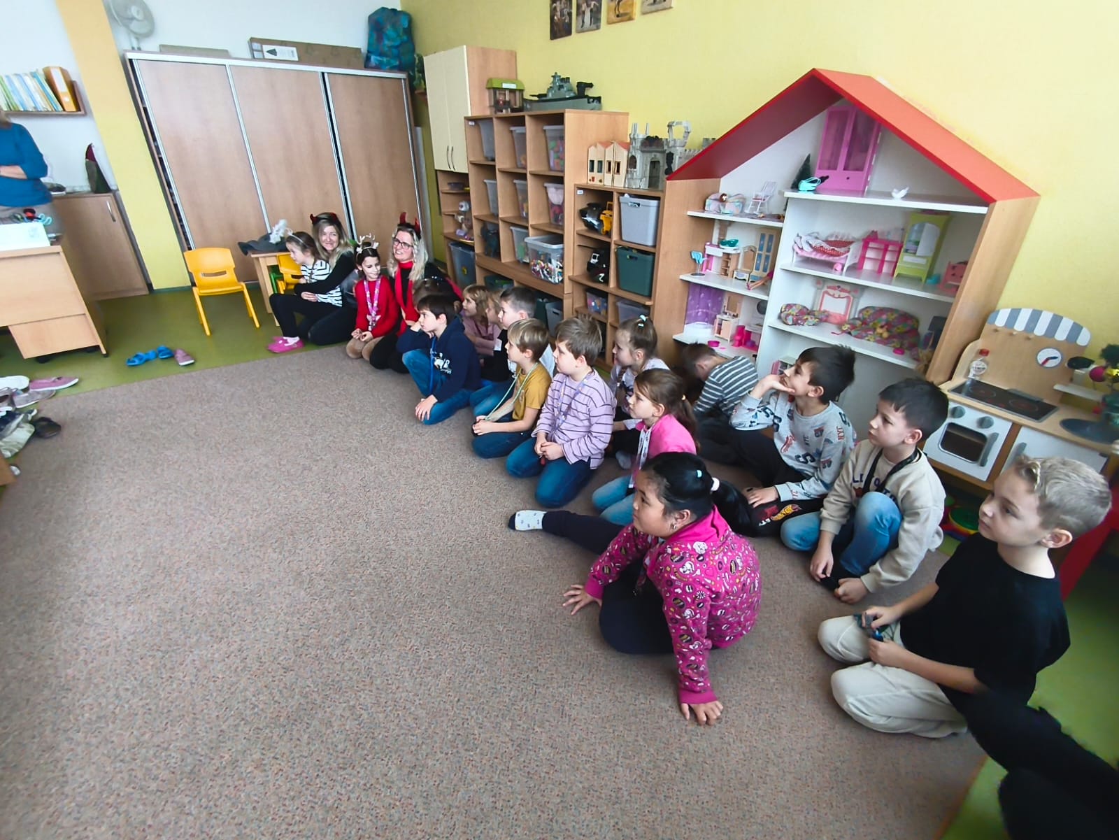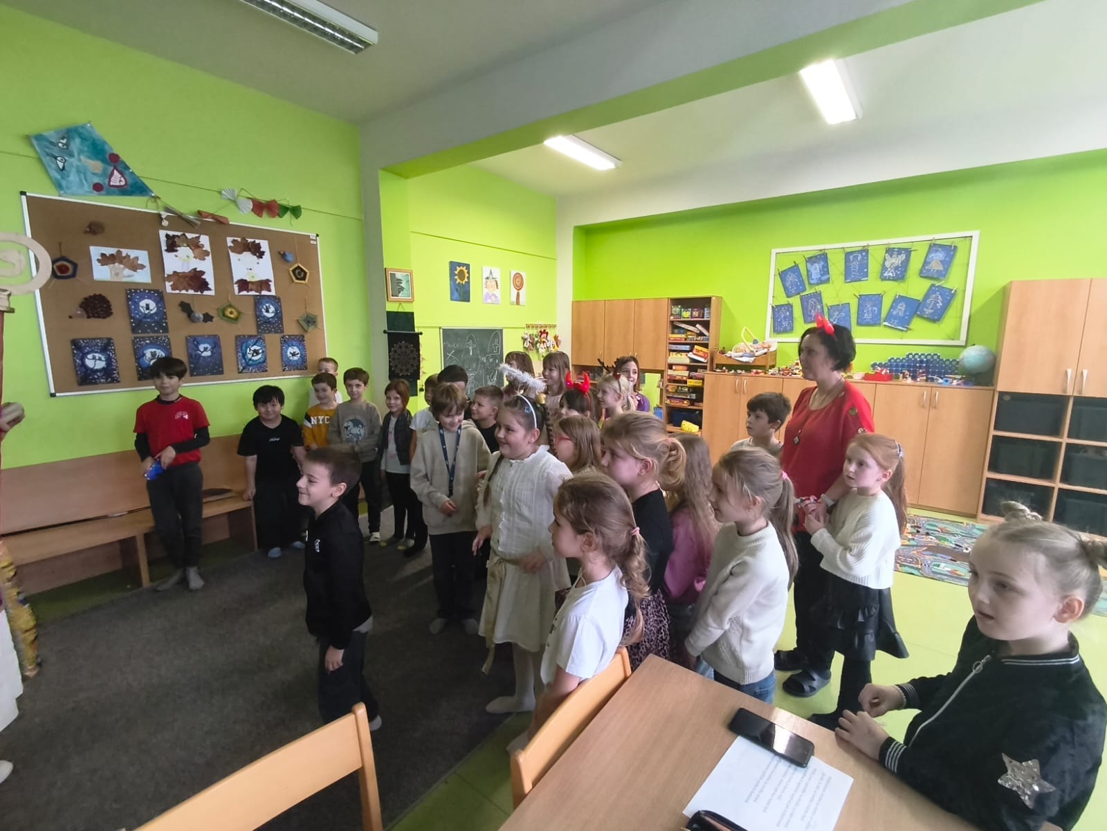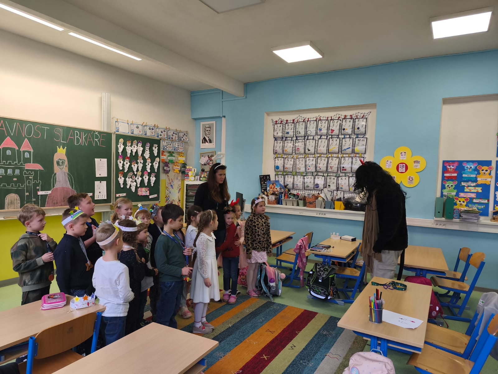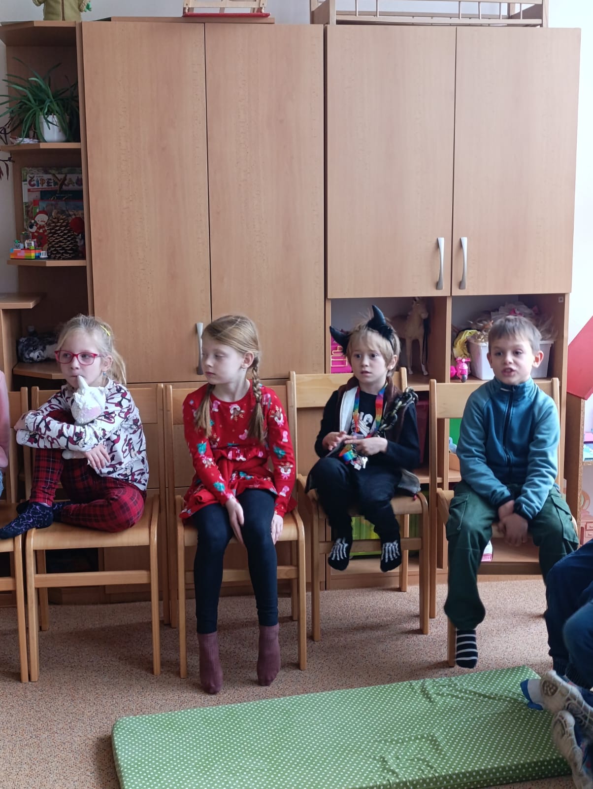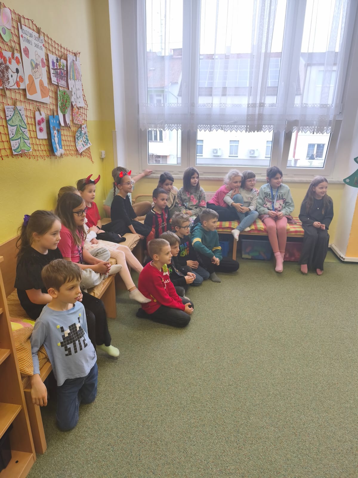 Poctivě se připravovaly: učily se krátké básničky i písničky, které pak Mikulášské skupině s odvahou předvedly. Čert tentokrát nikoho nestrašil – byl spíš legrační a přátelský. S andělem a Mikulášem přinesli dětem i malou nadílku, kterou jsme si společně v družině rozbalili. Celá návštěva měla nádech tajemna – chvíle napětí se střídaly s radostí a očekáváním. Pro děti to byl kouzelný a nezapomenutelný zážitek.