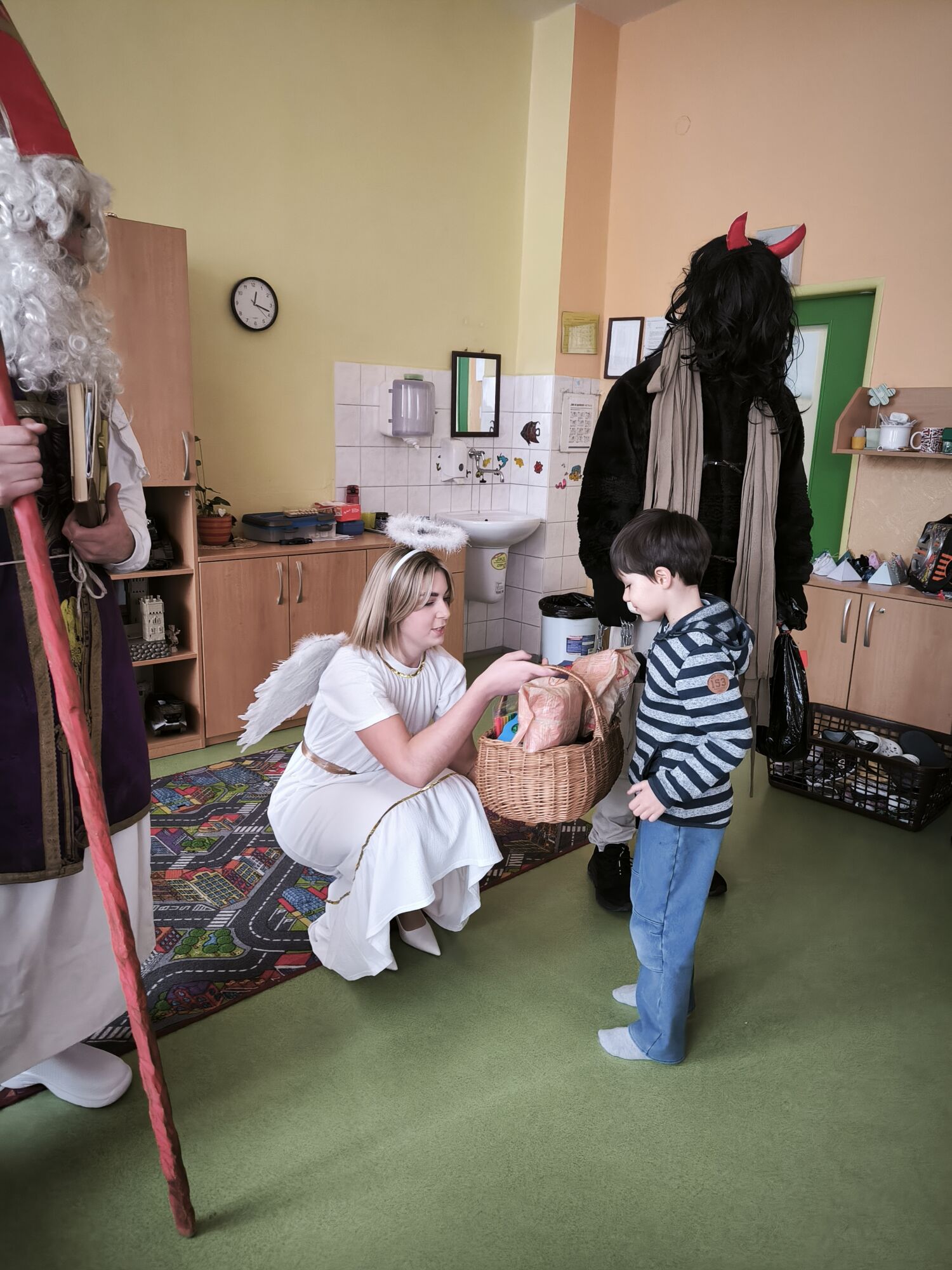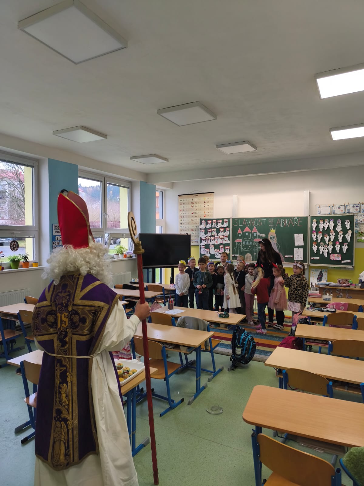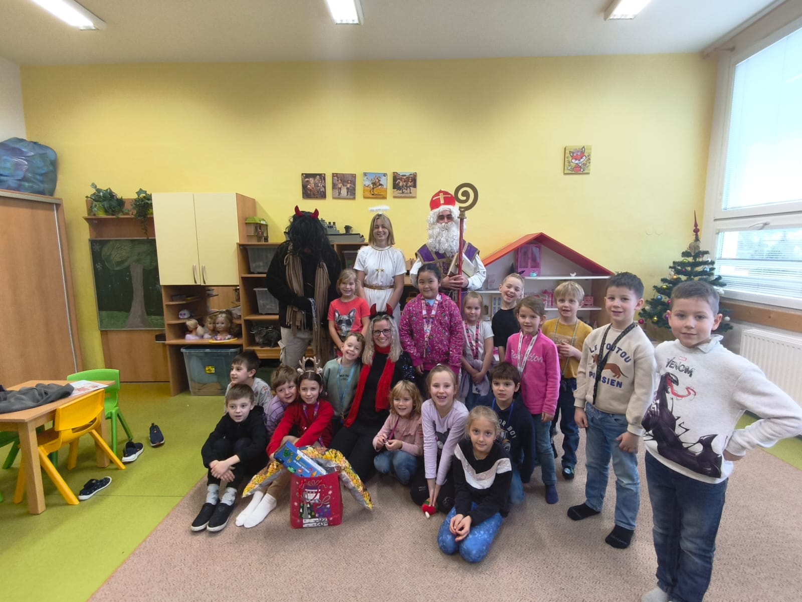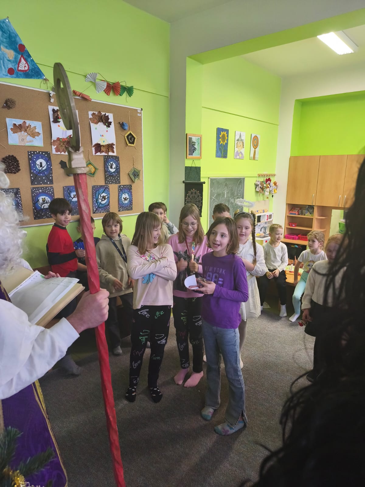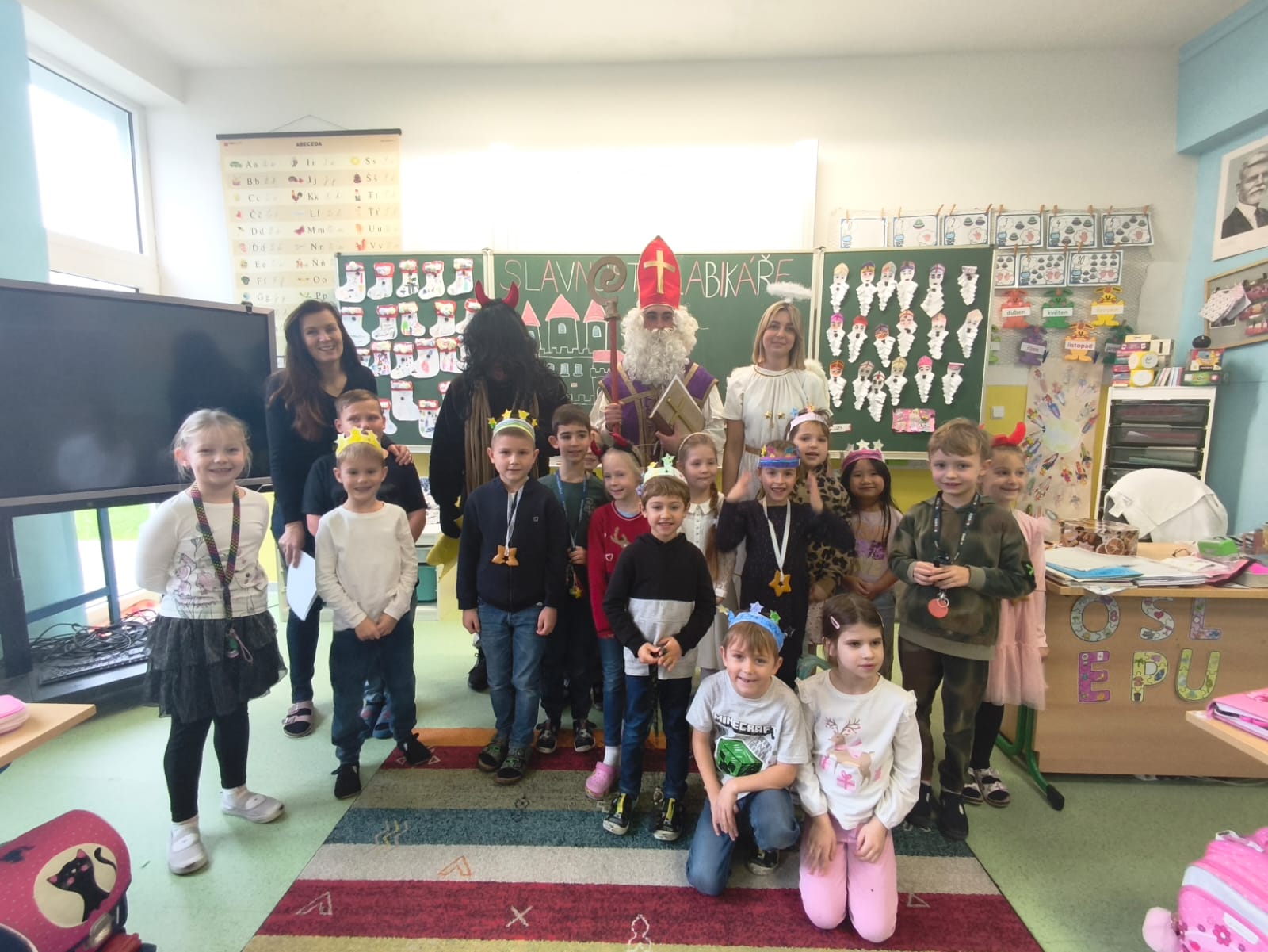 V pátek 5. prosince navštívili naši školní družinu Mikuláš, anděl a čert. Atmosféra byla sváteční už od začátku týdne, kdy do jednotlivých oddělení dorazily dopisy – některé od Mikuláše, jiné od samotných čertů. Děti si je s nadšením četly a těšily se na velký den.