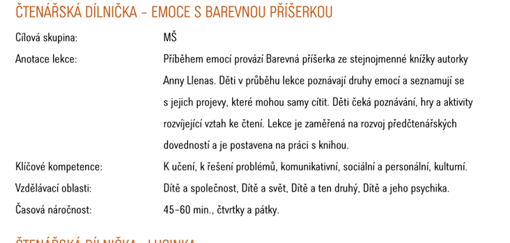 Tento pátek 7. 11. 2025 jde třída Draků do knihovny na vzdělávací program „Emoce s barevnou příšerkou“.