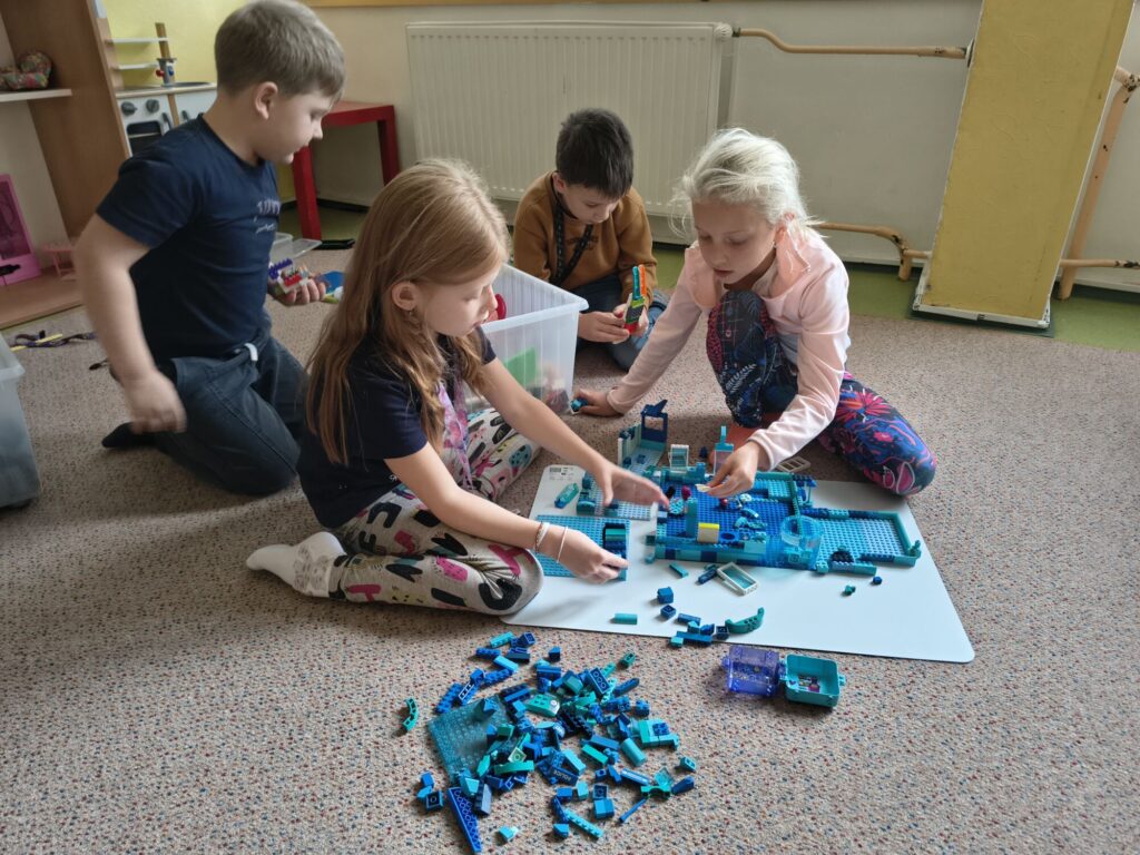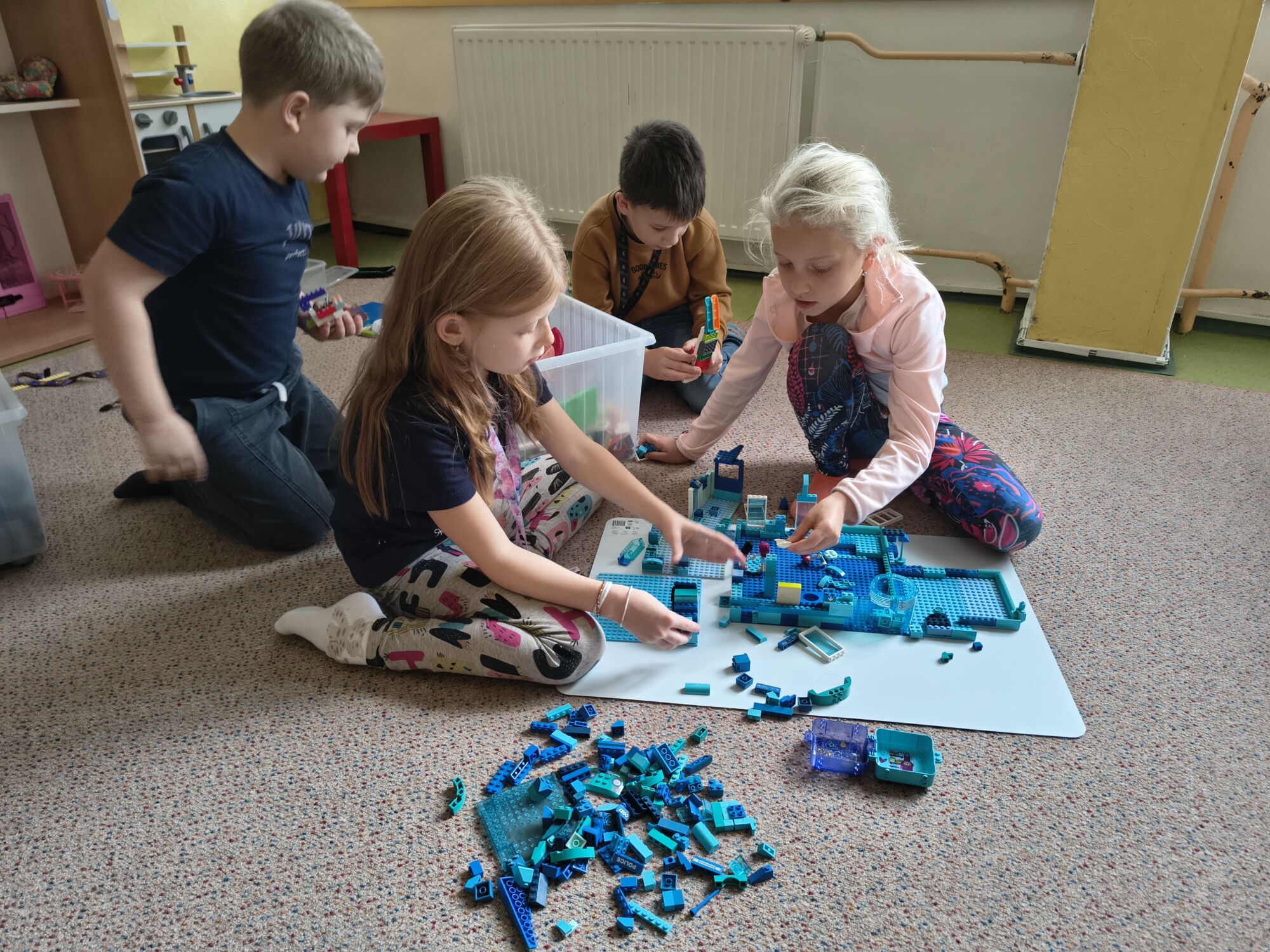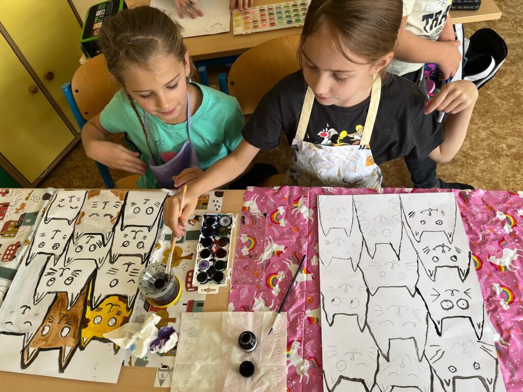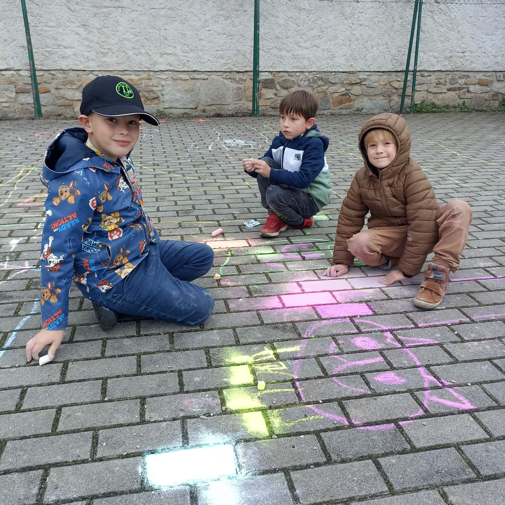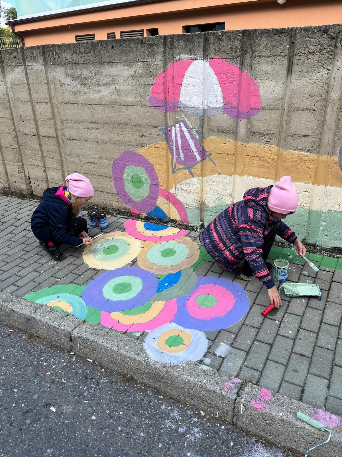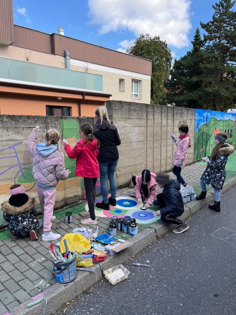 Na začátku měsíce se některé děti zapojily do Dne architektury a pod vedením p. vychovatelek pomáhaly s malováním na zeď plaveckého bazénu. Byla to zajímavá zkušenost a děti si ji moc užily.