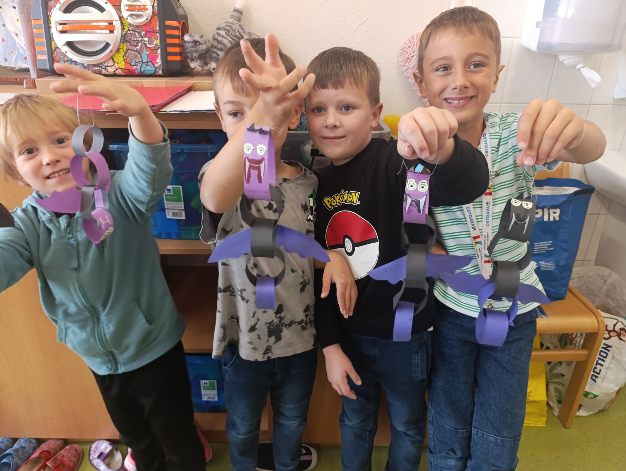 Postupně jsme se také začali chystat na Halloween – povídali jsme si o netopýrech, vyráběli halloweenskou výzdobu a zdobili prostory družiny tak, aby na nás dýchla ta pravá strašidelná atmosféra.