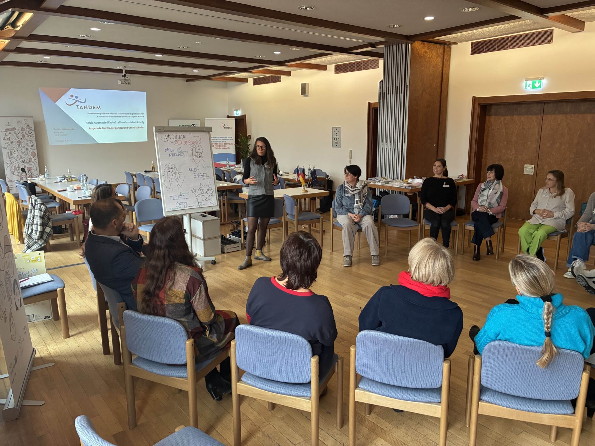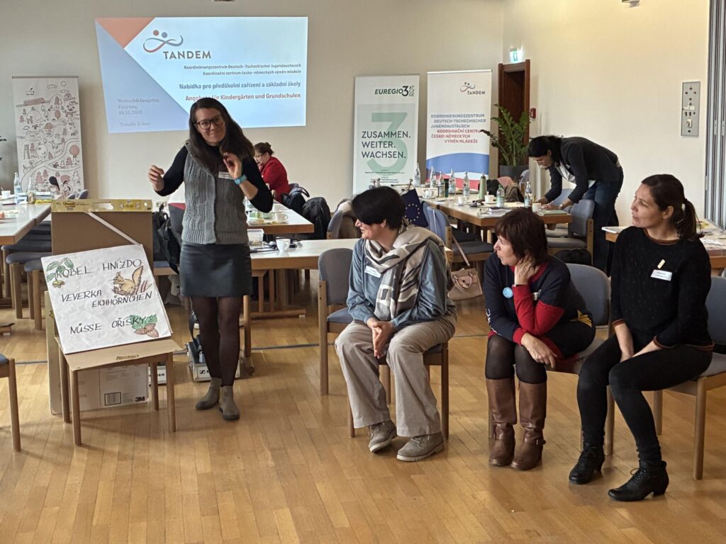 Součástí programu bylo podrobné seznámení s obsahem projektu a s činností organizací Tandem a EUREGIO, které dlouhodobě podporují česko-německou spolupráci škol. Účastníci získali mimo jiné informace o metodě jazykové animace a aktivně se zapojili do praktických ukázek této metody.