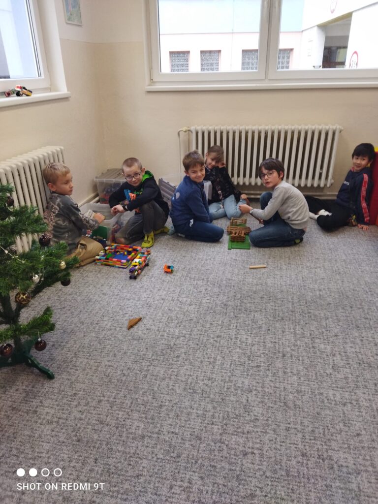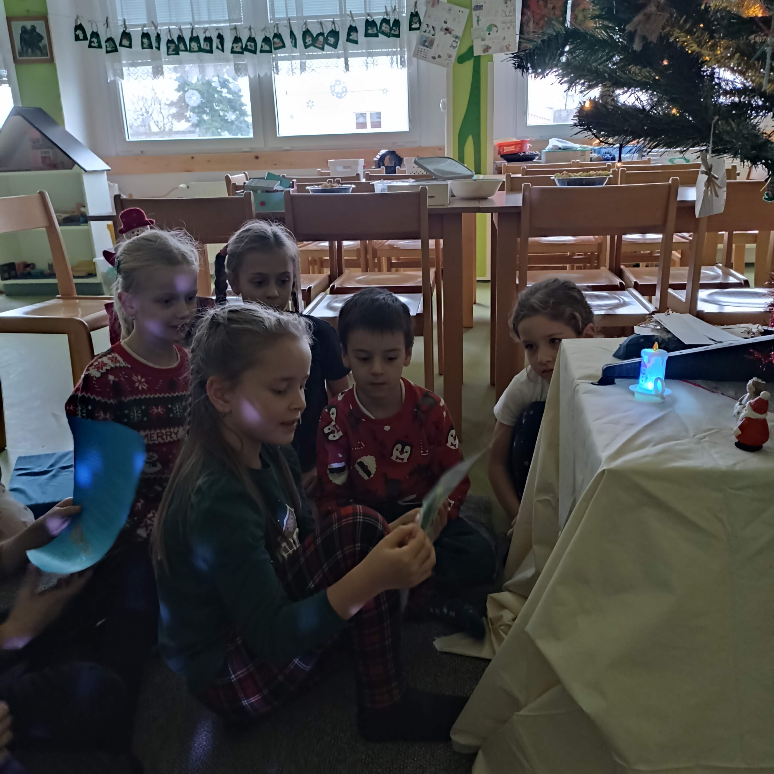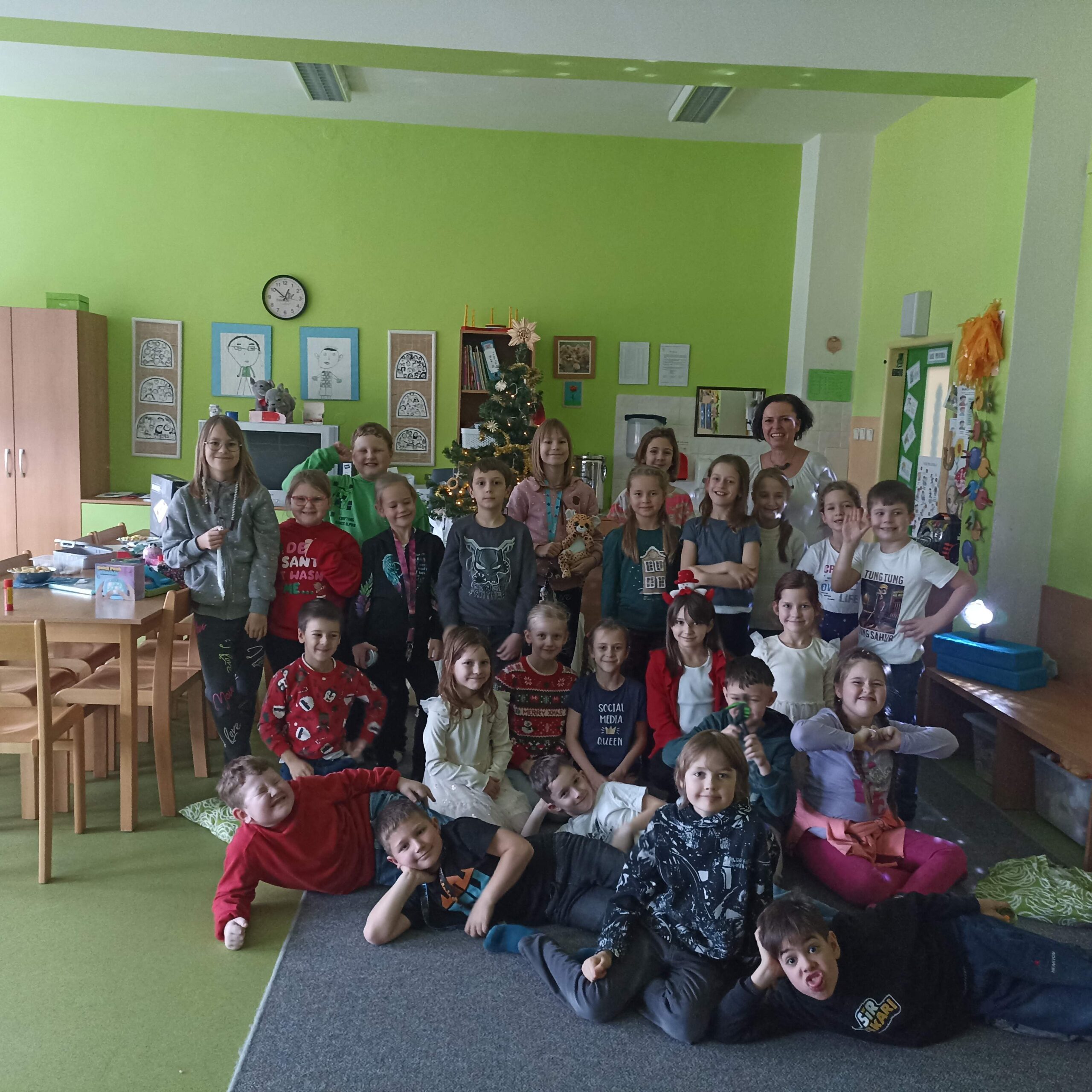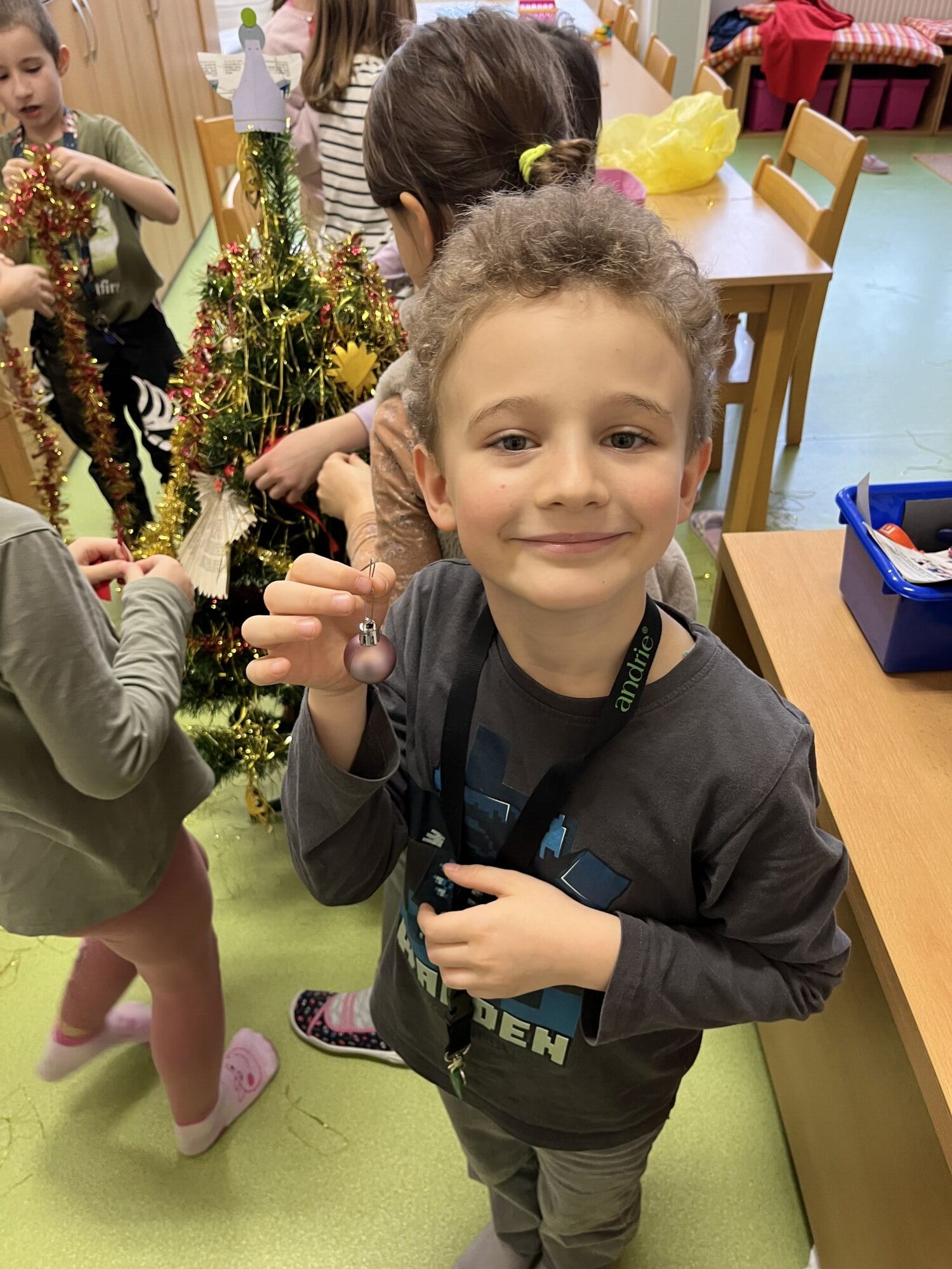 Před školou jsme si prohlédli betlém a vánoční strom, díky nimž jsme se naladili na sváteční čas. Děti s velkou chutí vyráběly vánoční přáníčka a malé dárečky pro své rodiče nebo kamarády, hrály si, pomáhaly s úklidem a zdobením družiny. Nechyběl ani pobyt venku na školním hřišti a společné zpívání vánočních písní.