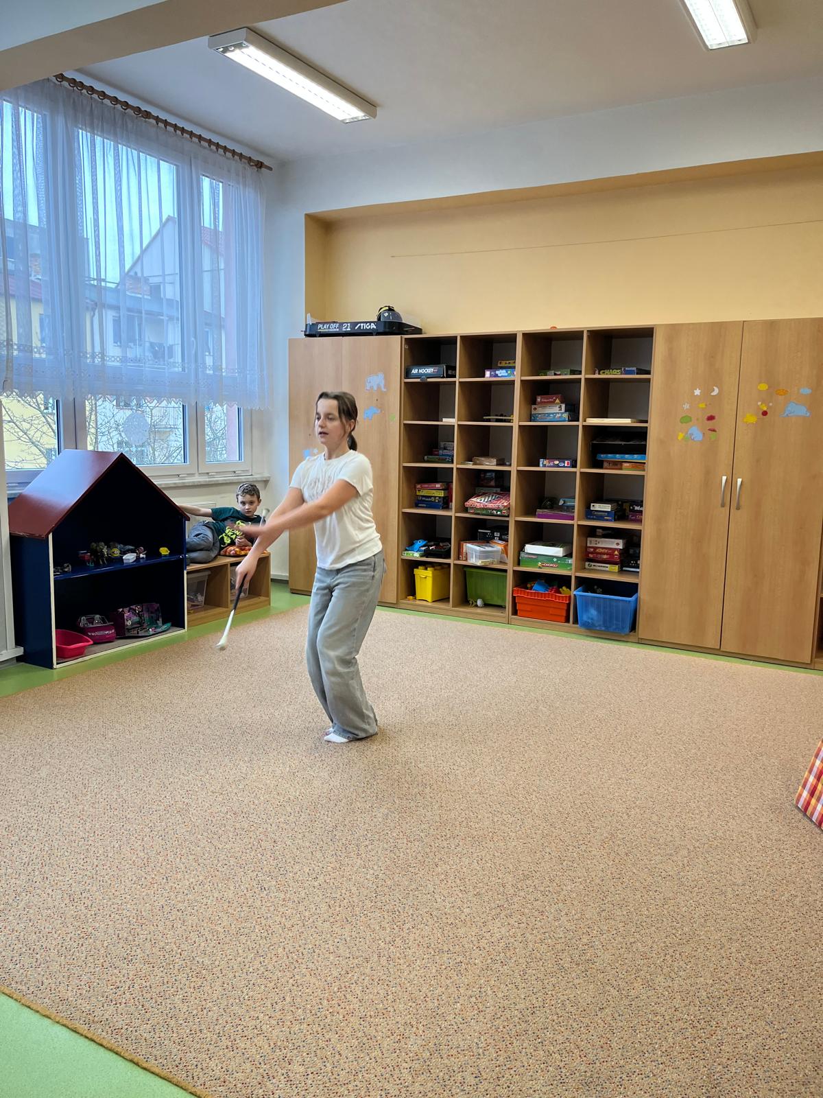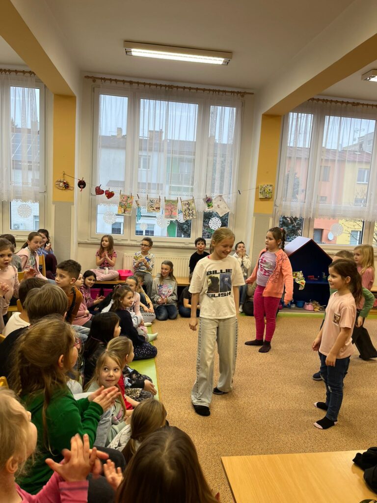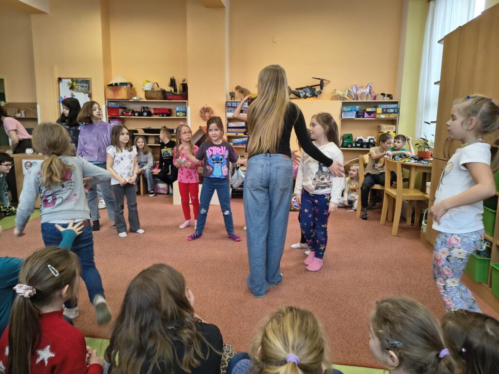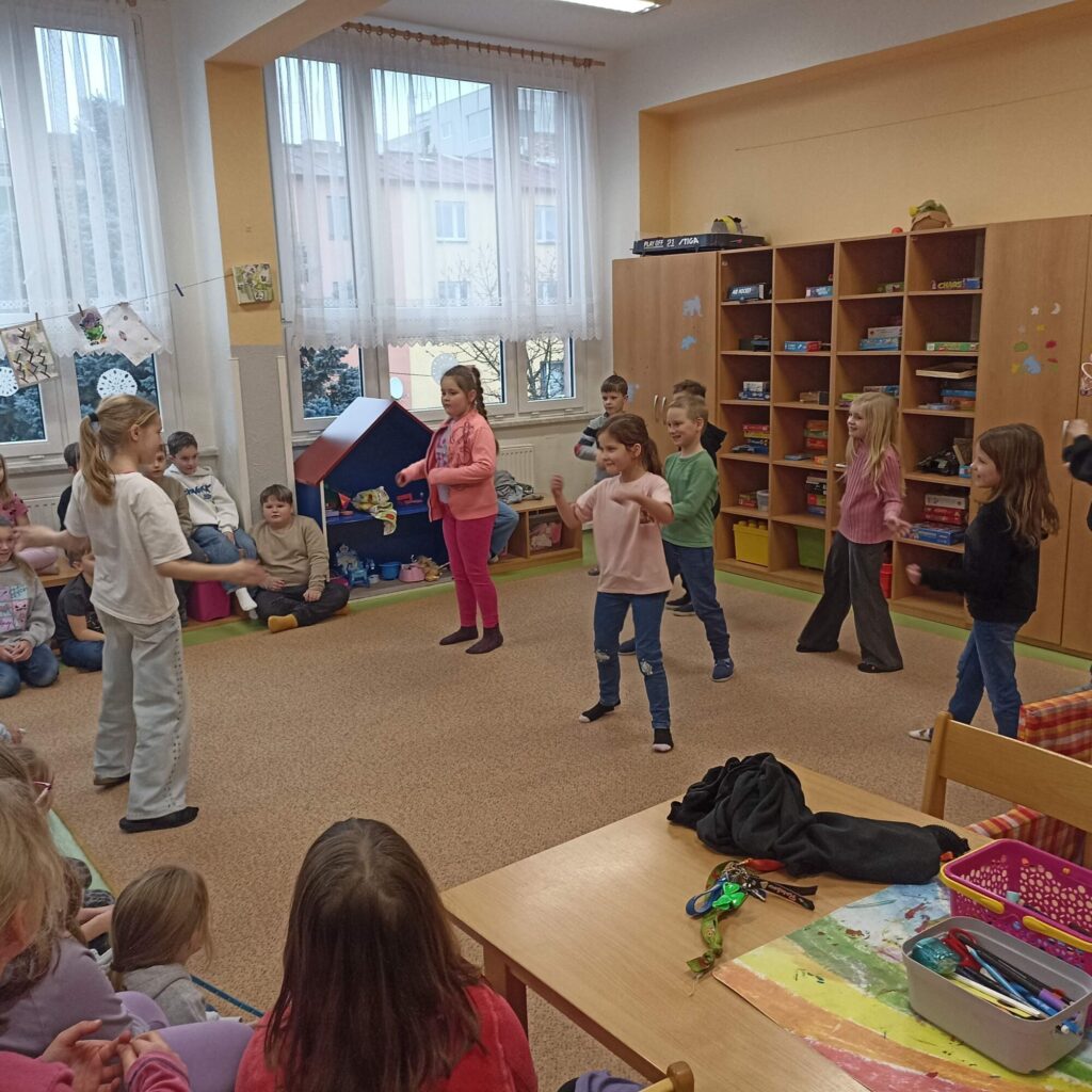 Navštívila nás Justýnka z 5. třídy, která dětem předvedla Street dance. Nezůstalo jen u ukázky – společně s dětmi nacvičila krátkou choreografii a proměnila družinu v taneční sál plný energie a nadšení.