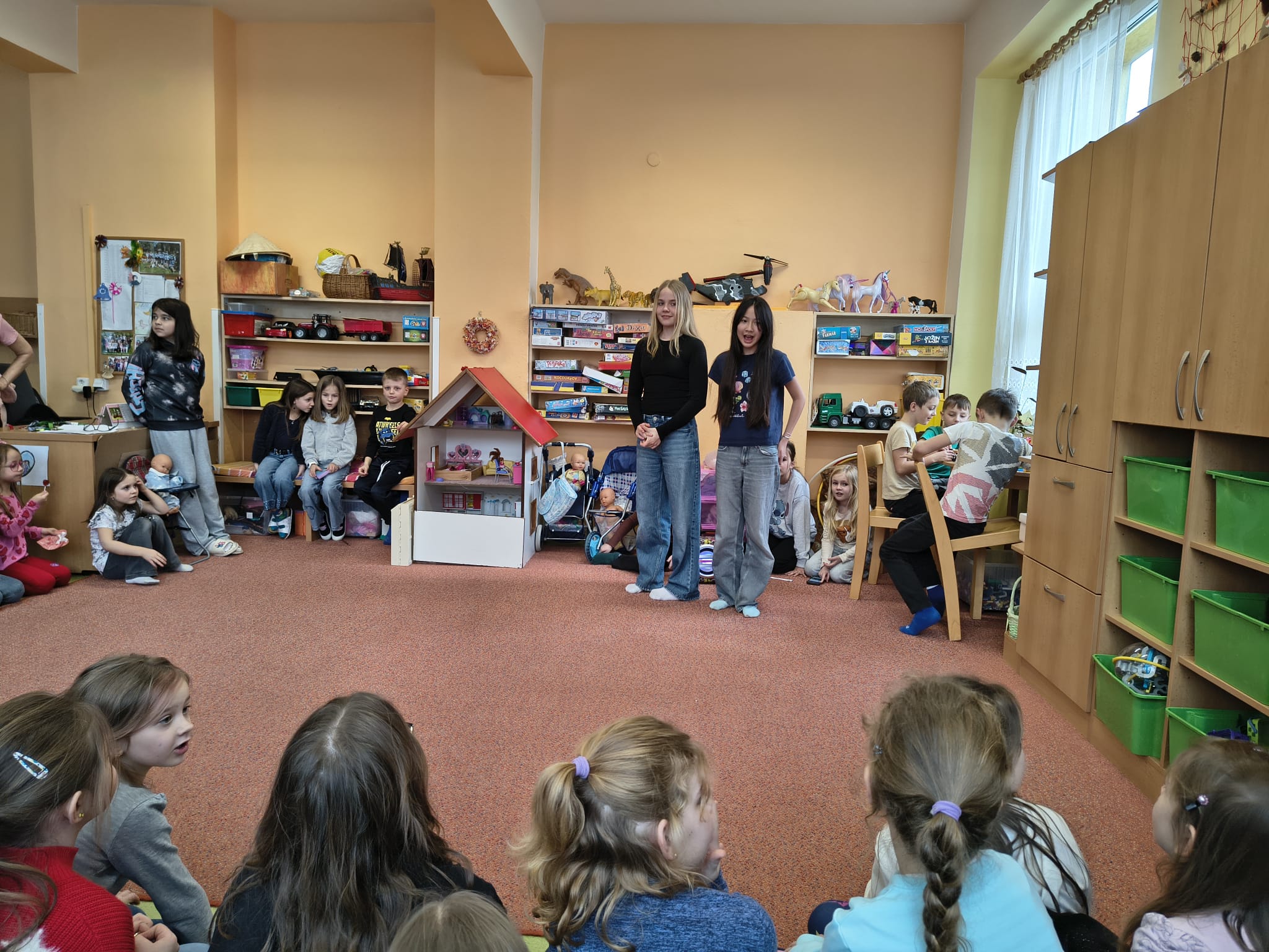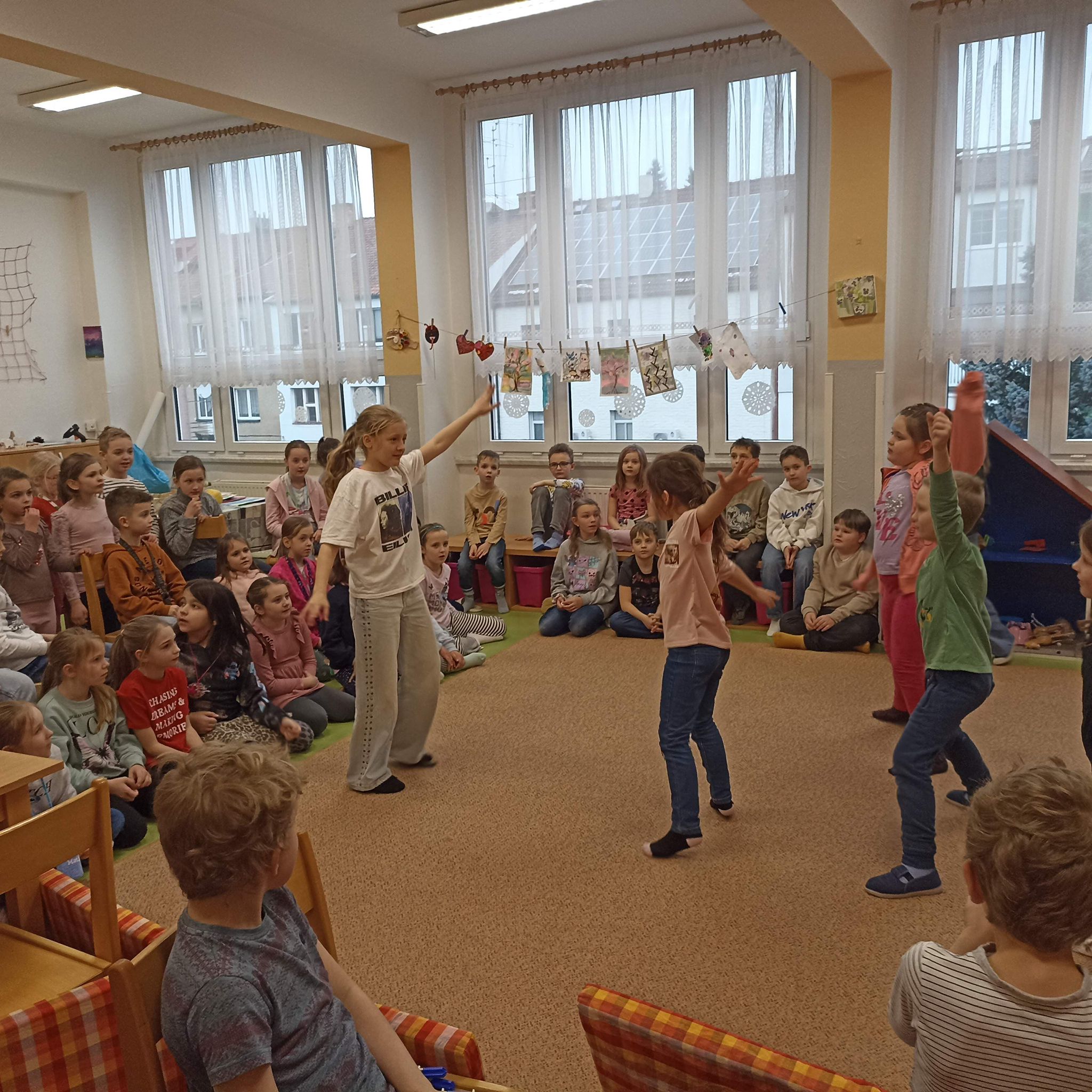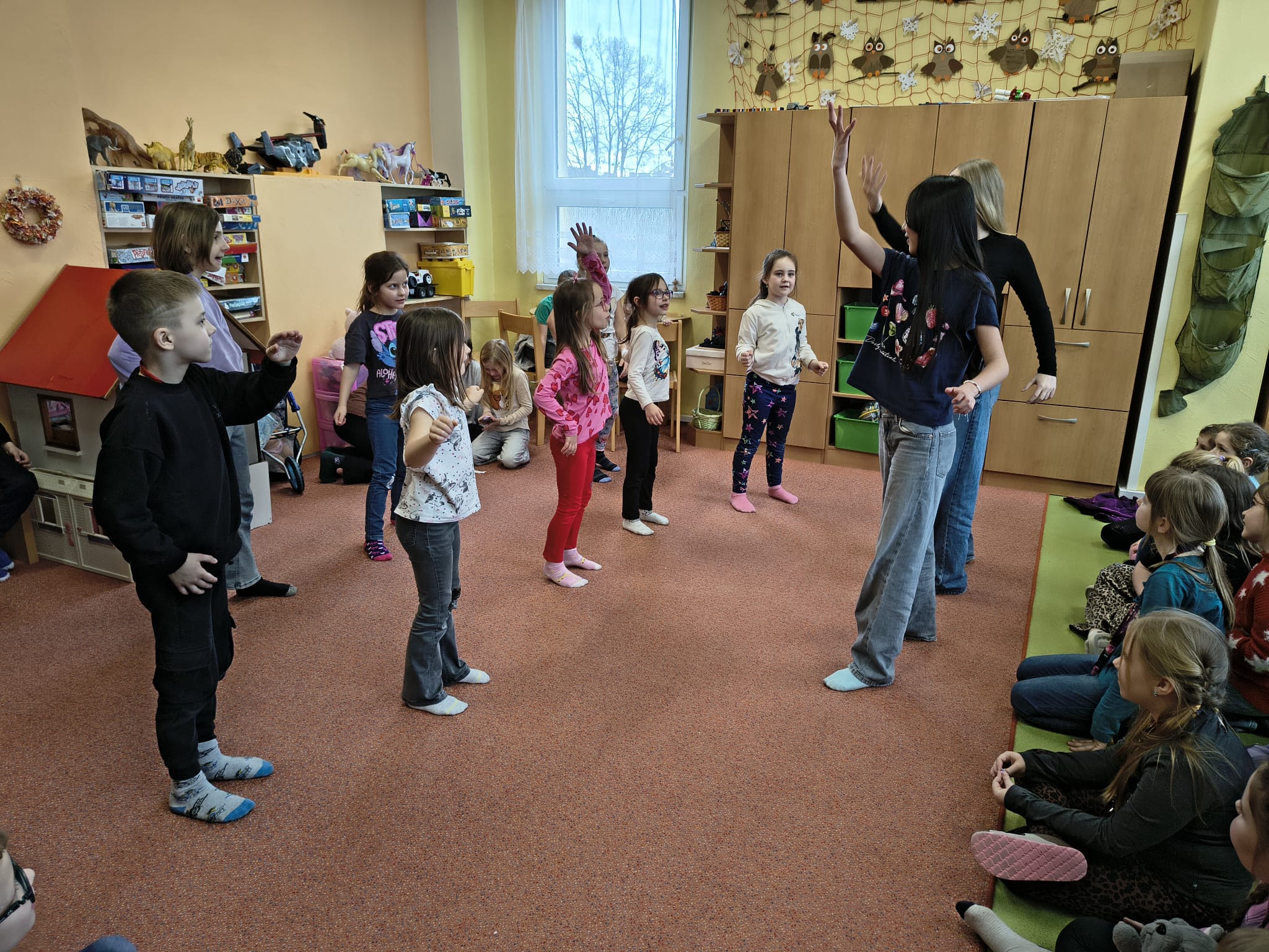 Navštívila nás Justýnka z 5. třídy, která dětem předvedla Street dance. Nezůstalo jen u ukázky – společně s dětmi nacvičila krátkou choreografii a proměnila družinu v taneční sál plný energie a nadšení.