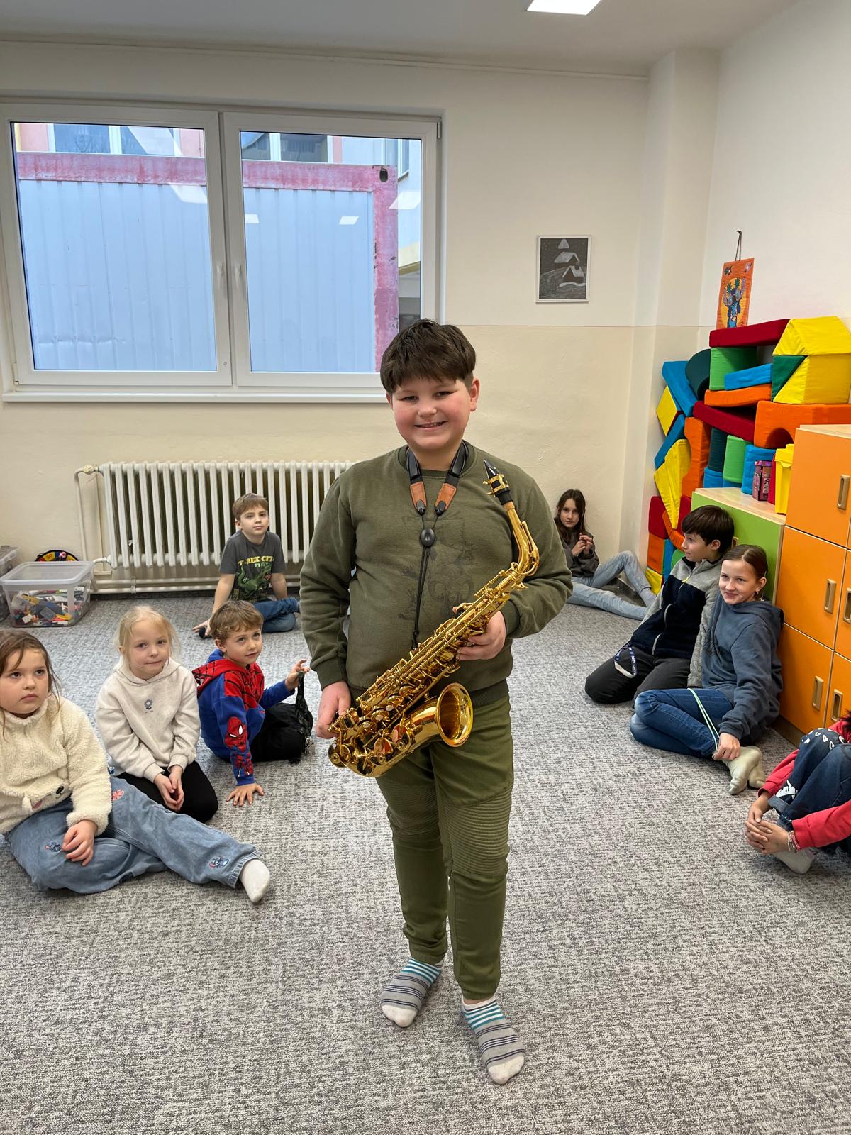 Hudební zážitek přinesl Dmitro ze 4. třídy, který dětem předvedl hru na saxofon. Pro mnohé to bylo první setkání s tímto nástrojem a všichni poslouchali s velkým zaujetím.