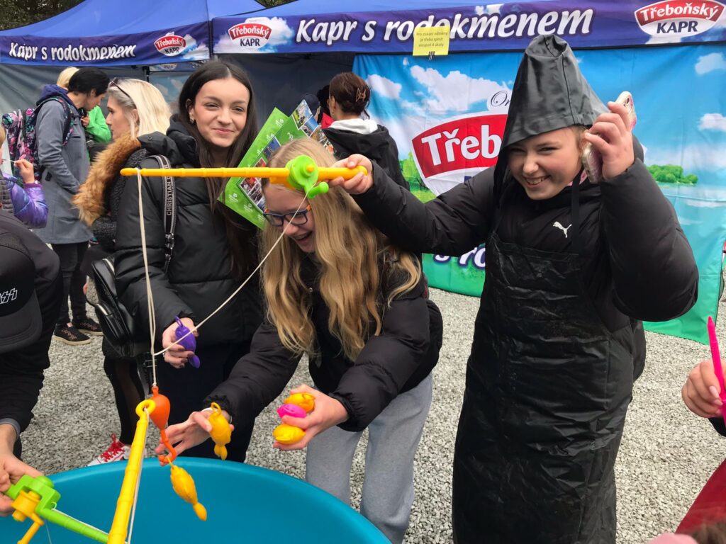 Hlavním lákadlem byly pro žáky stánky pod hrází (vedle výpusti), kde plnili jednoduché úkoly s rybářskou tematikou. Odměnou žákům za splněné úkoly byly pexesa, magnetky nebo odznáčky s rybami. Největší atrakcí byl bílý sumec Běla, který plaval v modré kádi. Albín Běla je totiž živá legenda rybníka, rybáři ho vyloví a potom zase vrátí zpět do vody. Mnoho žáků si pochutnalo na místních specialitách (kapří, sumčí nebo candátí hranolky), někteří navštívili i rybářské muzeum, které se otevřelo v letošním roce. Přálo nám na podzim poměrně teplé počasí. Skvělá nálada panovala i při cestě zpět do Písku. Celé jsme si to moc užili.