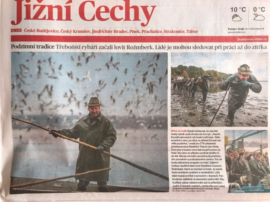 V pátek 17. října 2025 jsme se zúčastnili exkurze, jejíž náplní byl slavnostní výlov rybníka Rožmberk. Výlov začíná tradičně v pátek ráno a končí v neděli odpoledne. Na tuto akci přijíždí velké množství lidí z celé České republiky (uvádí se až padesát tisíc návštěvníků).